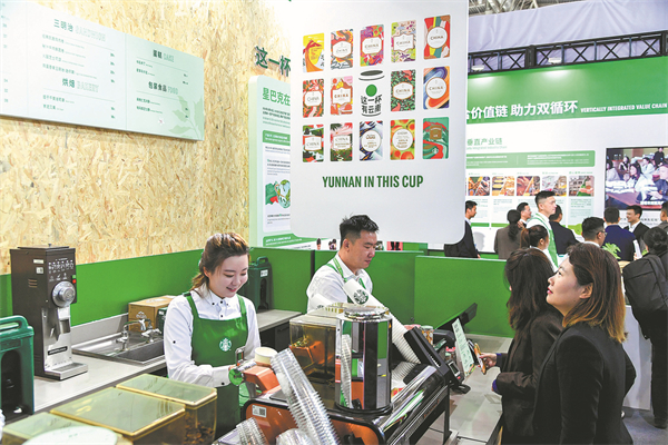 Visitors purchase coffee at a Starbucks booth during an exhibition in Beijing in December. [Photo/China Daily]