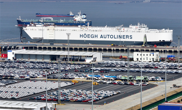 Export-bound vehicles await shipment at Taicang Port, Jiangsu province. JI HAIXIN/FOR CHINA DAILY