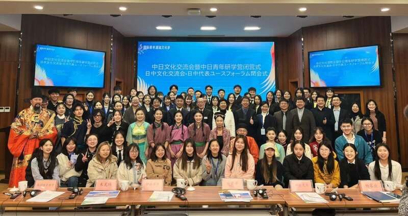 Group photo of Chinese and Japanese guests and youth representatives. Photo provided by the organizer.