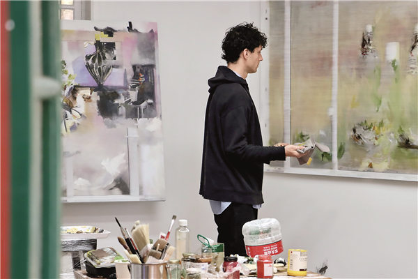 Willmann, a 2023 Yishu 8 French Young Artist Award winner, works during his two-month residency in the capital. [Photo provided to China Daily]