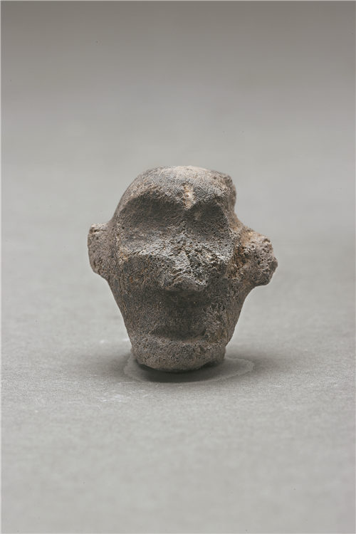 A stone head is among the new archaeological discoveries made at the Sanxingdui site in Guanghan, Sichuan province. On Thursday, the National Cultural Heritage Administration announced the new findings, including a jade-processing workshop, a massive terrace and a network of waterways. [Photo provided to China Daily]