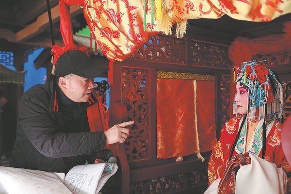Director Teng Junjie talks with Zhang during the filming. [Photo by Liu Haifa/For China Daily]