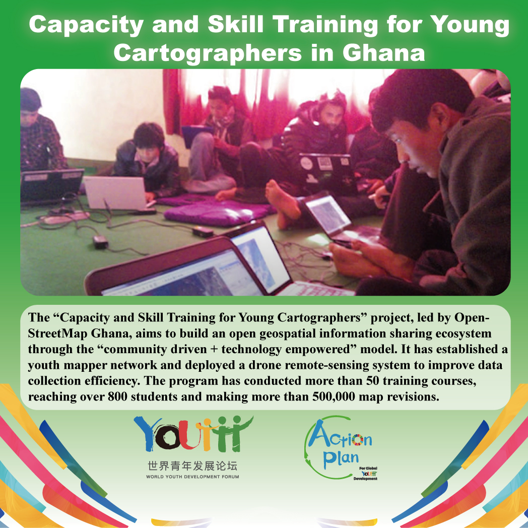 The “Capacity and Skill Training for Young Cartographers” project, led by OpenStreetMap Ghana, aims to build an open geospatial information sharing ecosystem through the “community driven + technology empowered” model. It has established a youth mapper network and deployed a drone remote-sensing system to improve data collection efficiency. The program has conducted more than 50 training courses, reaching over 800 students and making more than 500,000 map revisions.