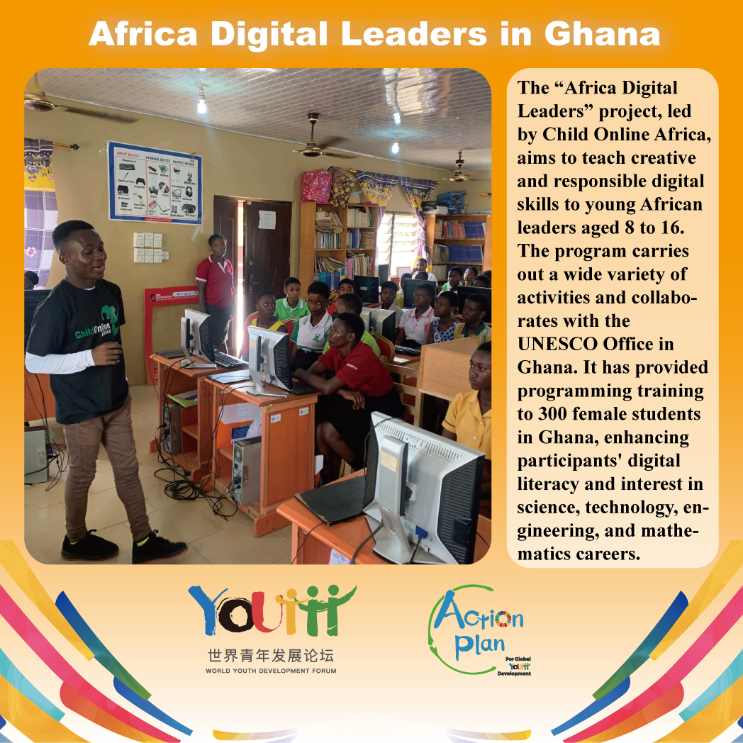 The “Africa Digital Leaders” project, led by Child Online Africa, aims to teach creative and responsible digital skills to young African leaders aged 8 to 16. The program carries out a wide variety of activities and collaborates with the UNESCO Office in Ghana. It has provided programming training to 300 female students in Ghana, enhancing participants' digital literacy and interest in science, technology, engineering, and mathematics careers.