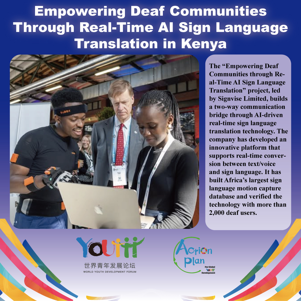 The “Empowering Deaf Communities through Real-Time AI Sign Language Translation” project, led by Signvise Limited, builds a two-way communication bridge through AI-driven real-time sign language translation technology. The company has developed an innovative platform that supports real-time conversion between text/voice and sign language. It has built Africa’s largest sign language motion capture database and verified the technology with more than 2,000 deaf users.