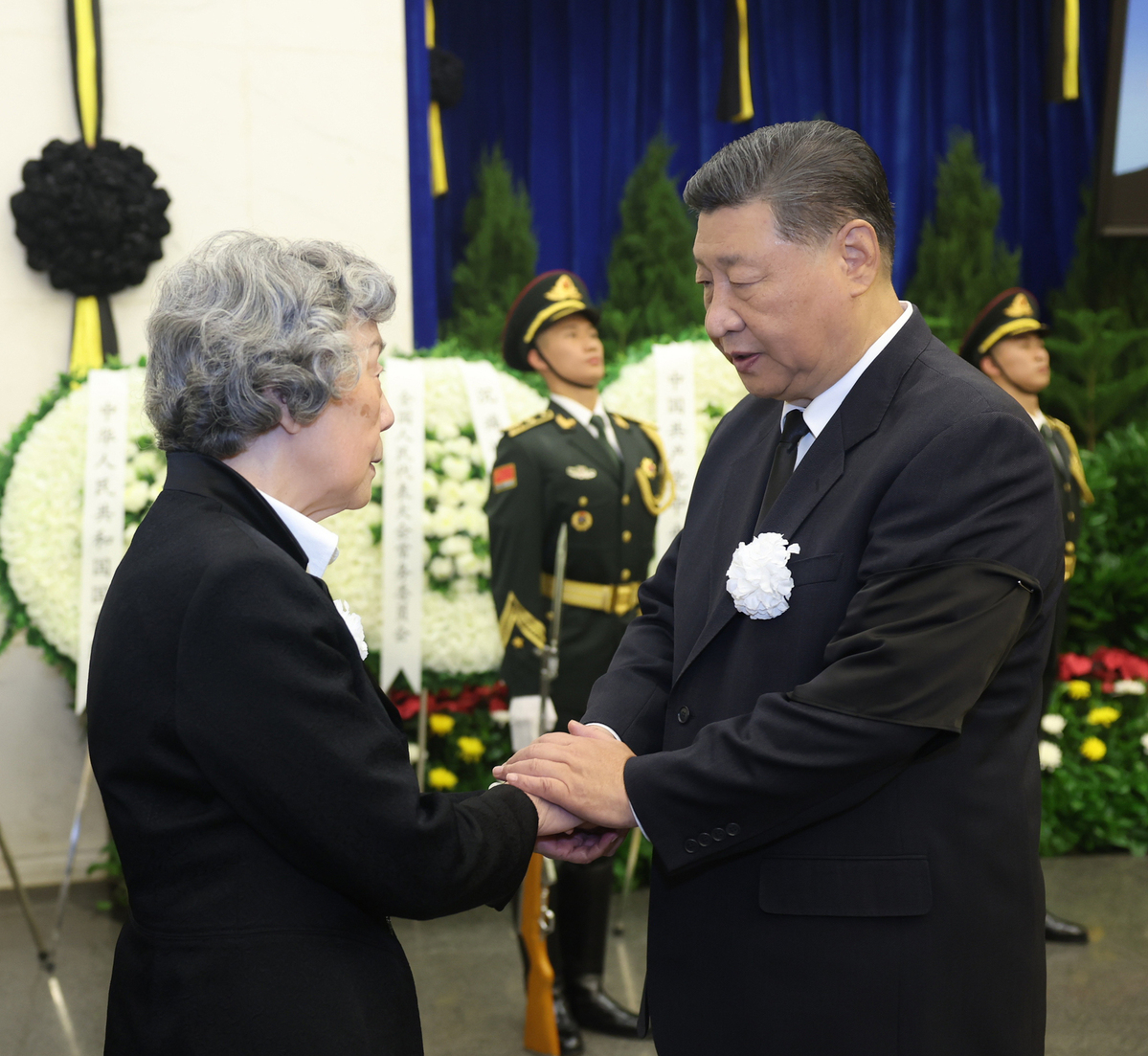 Xi Jinping expresses deep condolences to a family member of Wu Bangguo in Beijing on Monday. The remains of Wu, former chairman of the National People's Congress Standing Committee, China's top legislature, were cremated on Monday. JU PENG/XINHUA
