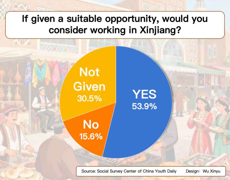 A new survey byChina Youth Dailyand Wenjuan.com shows 94.6% of young respondents are optimistic about Xinjiang’s future, and over half (53.9%) would consider working there. Many see opportunities in cultural tourism, modern agriculture, and new energy industries.