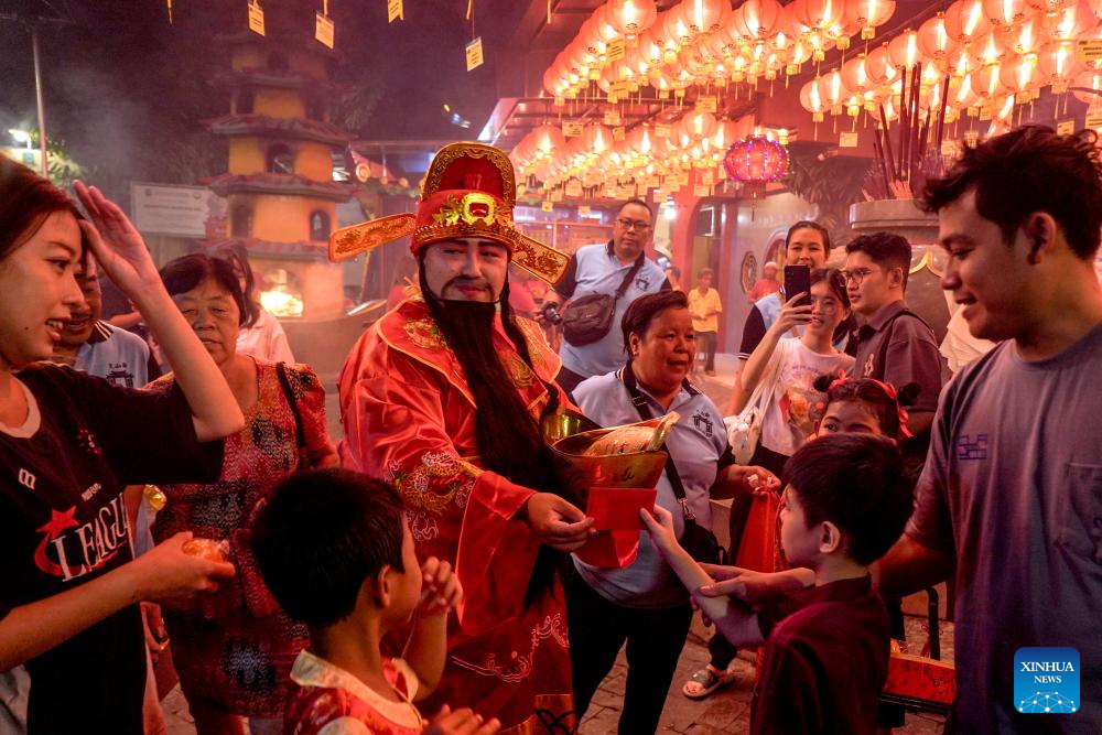 A man dressed as the god of fortune attends Chinese New Year's Eve celebrations in Tangerang, Banten Province, Indonesia, Feb. 16, 2026. (Photo by B. Nugraha/Xinhua)