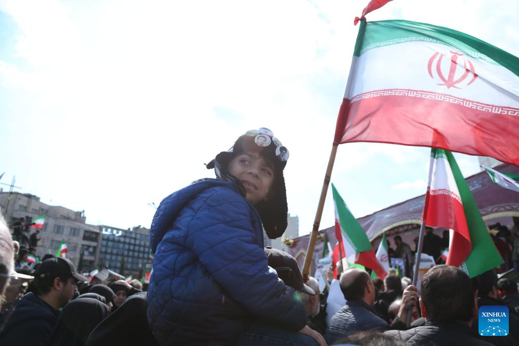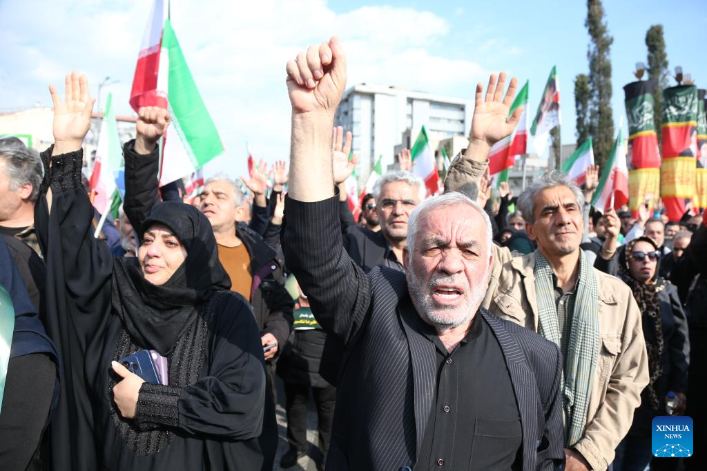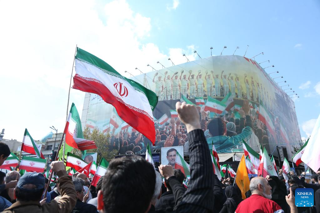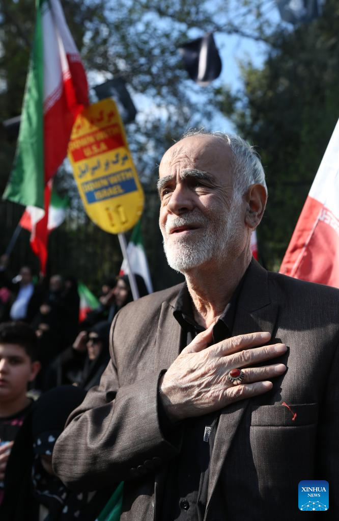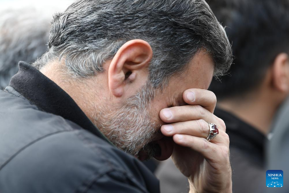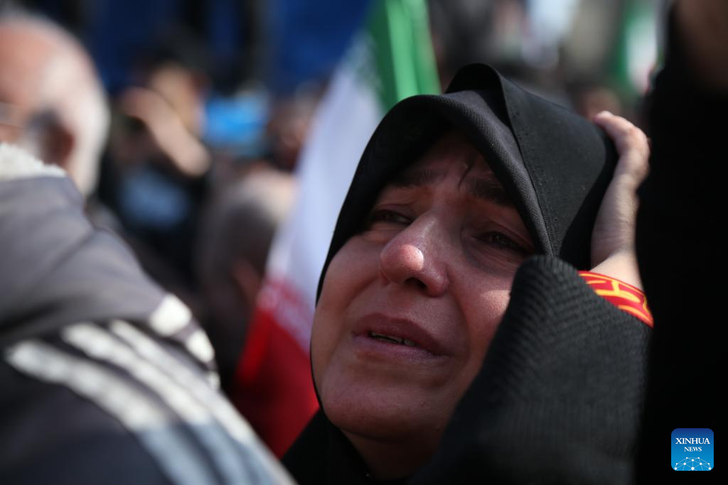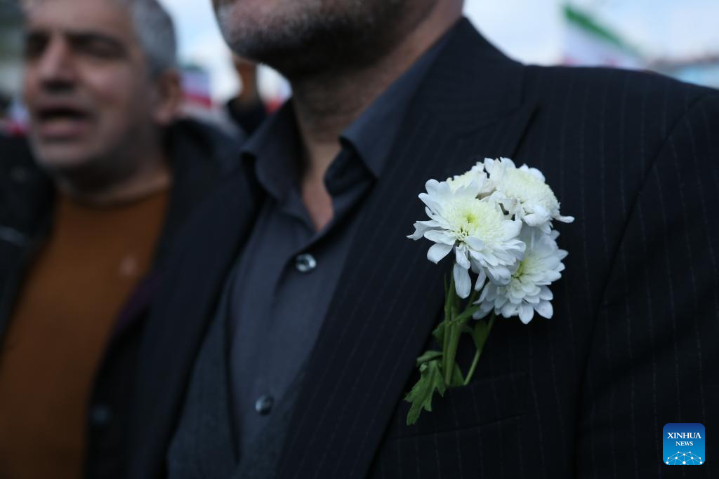 TEHRAN, April 1 (Xinhua) -- Iranians gathered in Tehran on Wednesday to attend a funeral ceremony for Alireza Tangsiri, chief commander of the Navy of the Islamic Revolution Guards Corps (IRGC), and other armed forces personnel killed in recent U.S. and Israeli strikes.