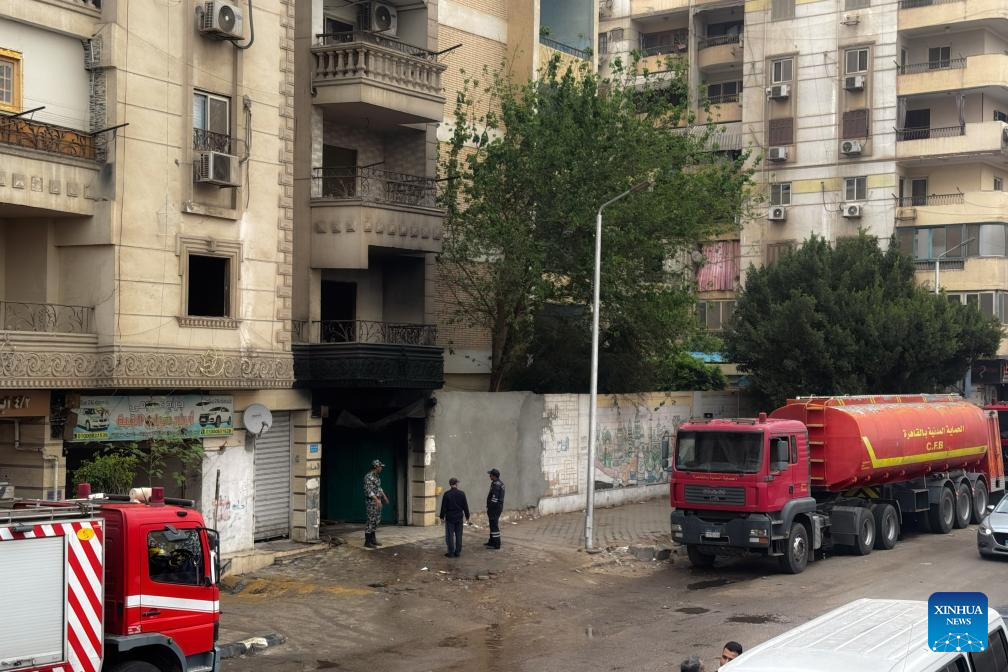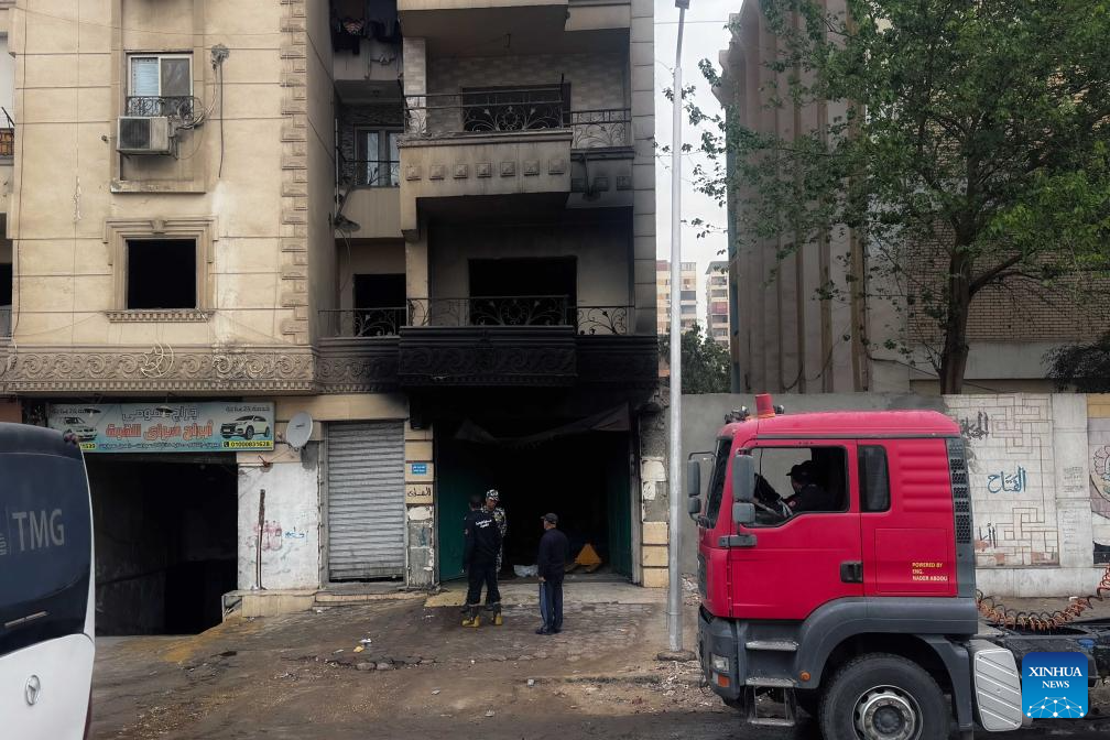 Photo taken on April 1, 2026 shows a building damaged by fire in Cairo, Egypt. At least eight people were killed and 17 others injured when a fire broke out at a textile factory in the Egyptian capital Cairo, Egypt's state-run Dar-elhilal web portal said on Wednesday. (Xinhua/Ahmed Gomaa)