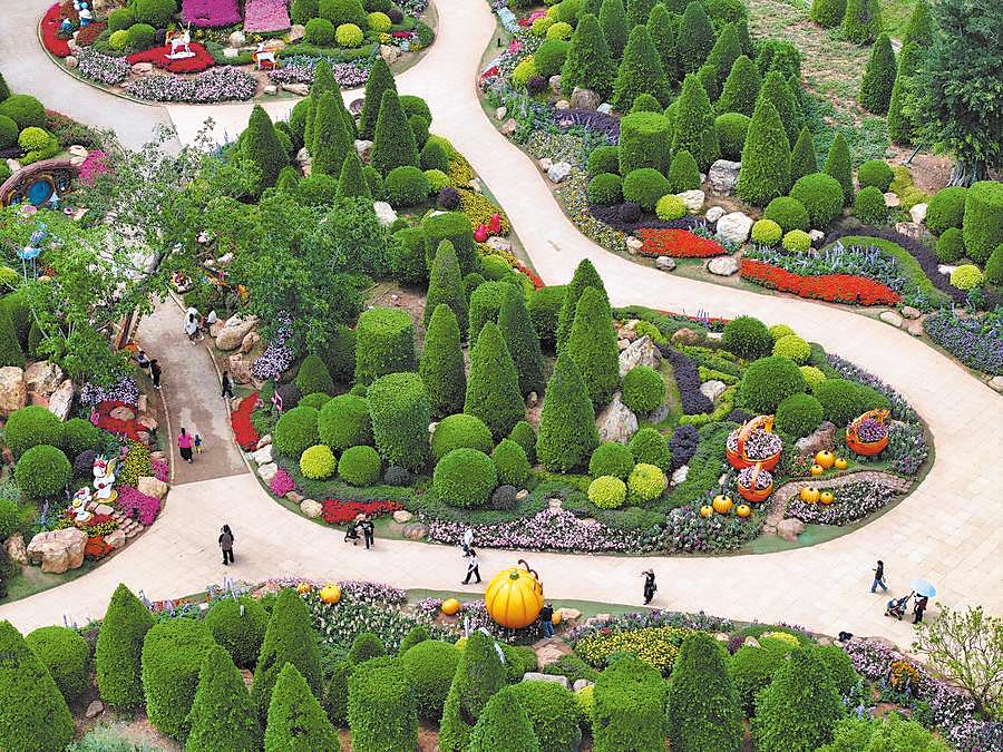 An aerial photo shows tourists visiting a scenic area in Nanning, the Guangxi Zhuang autonomous region, on March 23. YU XIANGQUAN/FOR CHINA DAILY