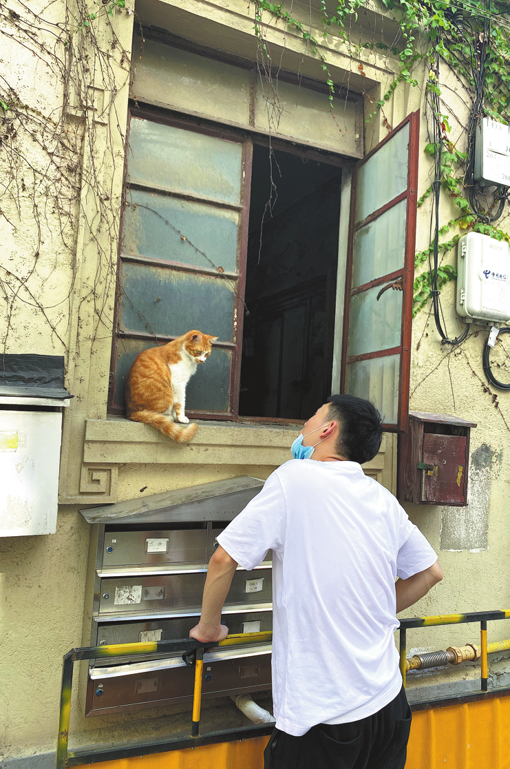 Pet detective Zhang Zhanfei examines a cat during a search for a lost animal. CHINA DAILY