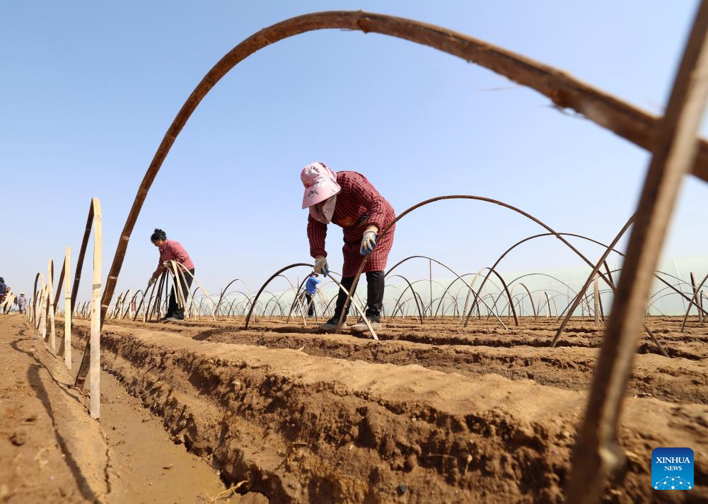 Farmers plant ginger in Nanqiao Town of Xingtang County, Shijiazhuang of north China's Hebei Province, March 25, 2026. Farmers across China have recently been busy with spring ploughing. (Xinhua/Yang Shiyao)