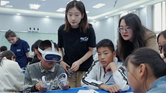 The volunteer teaching team from Beijing Normal University traveled to Guangxi, Qinghai, and Yunnan to implement the "Bring Films to the Countryside" project. By integrating VR technology and designing diverse activities, they enriched the spiritual lives of rural students and helped them experience the charm and value of aesthetic education firsthand.