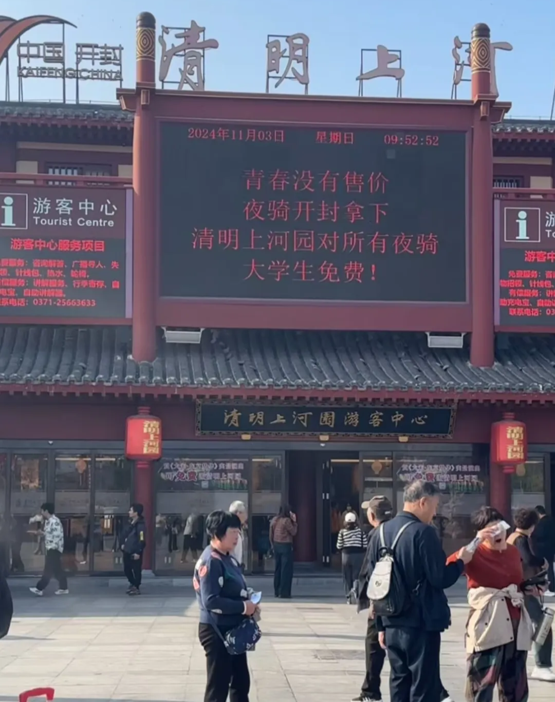 Recently, a night-riding trend to Kaifeng has become popular. Many university students from Zhengzhou cycle for five hours, arriving in Kaifeng, Henan Province, 50 km away, in the early morning. Some students mentioned that they wanted to try the local soup dumplings and challenge themselves through cycling, saying that "youth only comes once." Starting November 3, several local scenic spots in Kaifeng, such as Millennium City Park, are open for free to all university students participating in night cycling. Local traffic police have stayed up late to regulate and guide the students' cycling behavior, reminding them to prioritize safety.