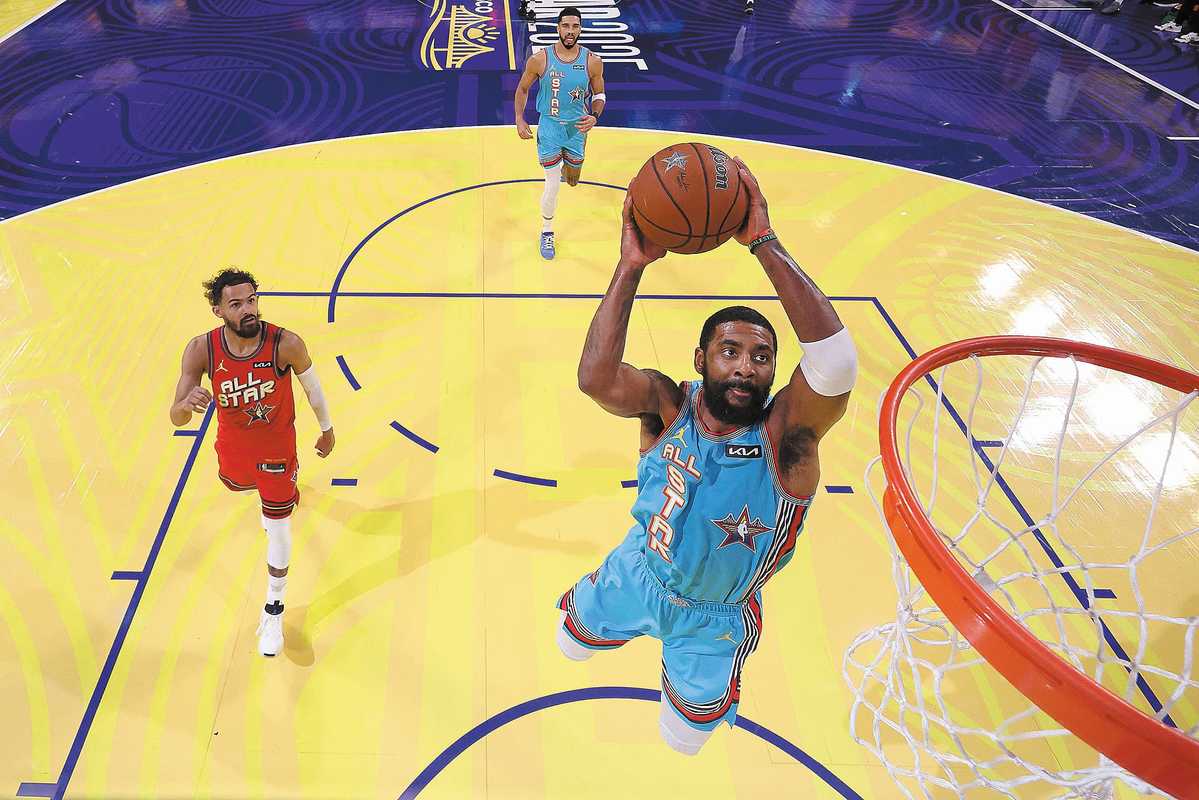 Kyrie Irving of the Dallas Mavericks dunks the ball during All-Star Game on Sunday. AFP